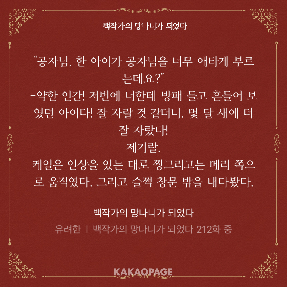 1-1. 플롯 + 문체 + 착각계 특에서 오는 유치함 3종은 괜찮은데 어린애 말투로 옆에서 꾸준히 주인공 부둥부둥하니까 내가 유치원에 왔나 싶어 어느 정도냐면 용용이 딸각에서 오는 언짢음이 묻힐 정도임ㅋㅋ 라온 분량이 온홍 정도만 됐어도 그렇게 거슬리진 않았을 건데 차기 로드 아님? 어림도 없지