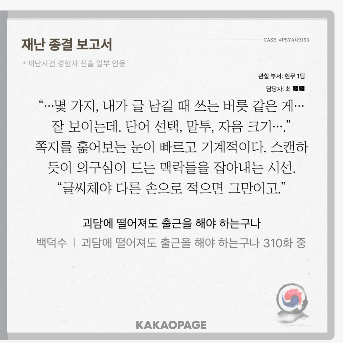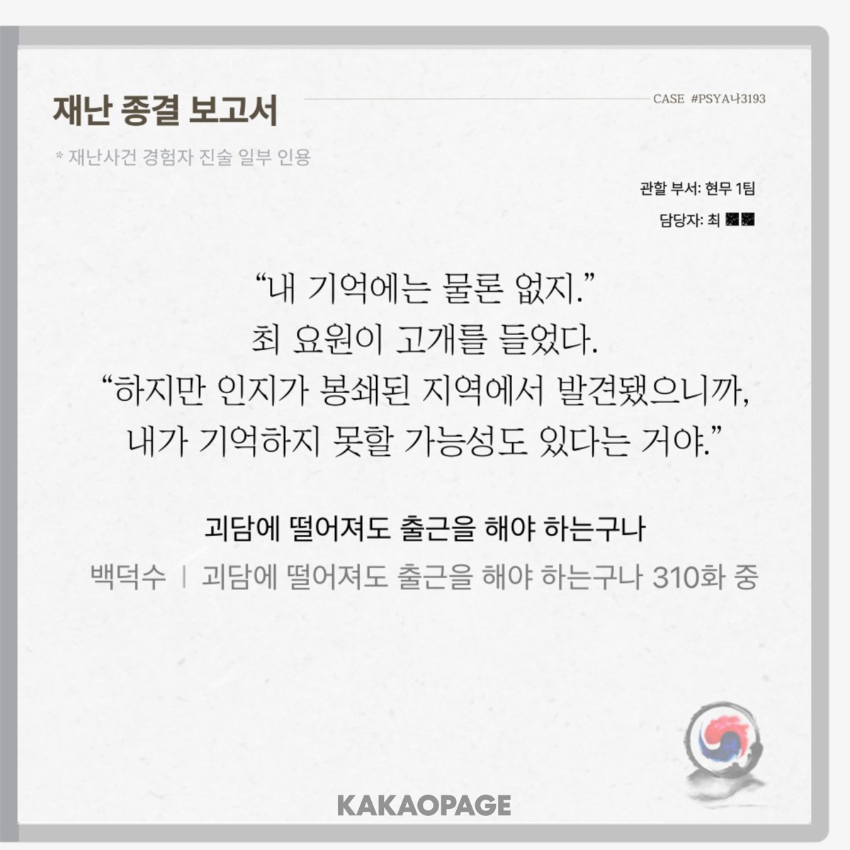 최 씨도 이러더니 곽 씨도...? 괴출 세계관 아저씨 특으로 생각하겠습니다.