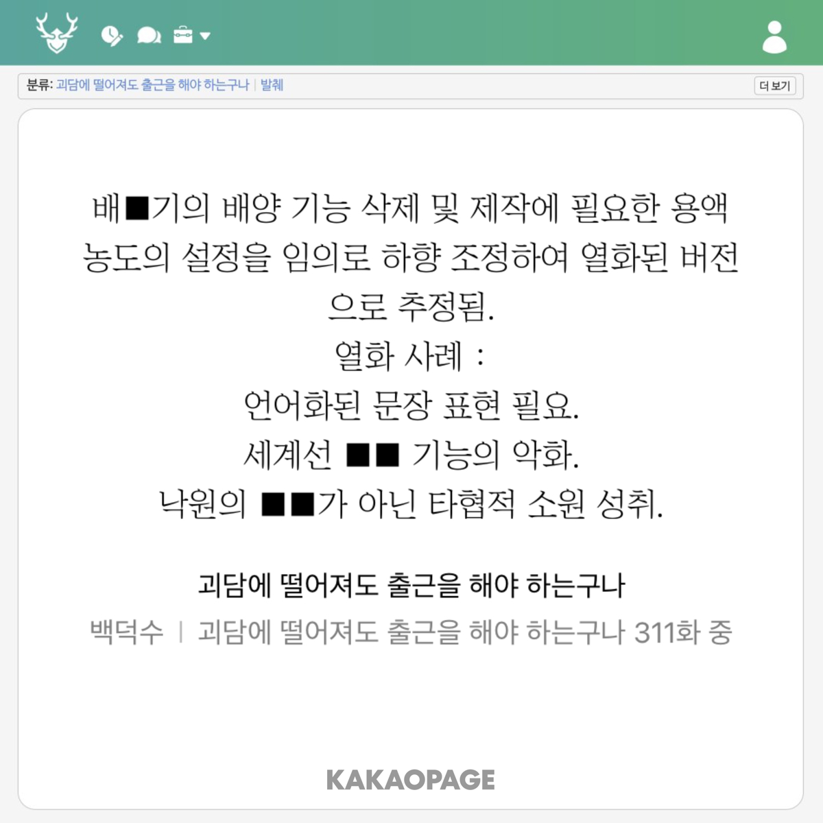 개연성 하니까 갑자기 전독시 생각나서 스트레스 받음ㅋㅋㅋㅋㅋㅋ 개연성 안 지킬 거면 작중에서 개연성 언급 금지하는 법 만들어야함 으흐흐흑...