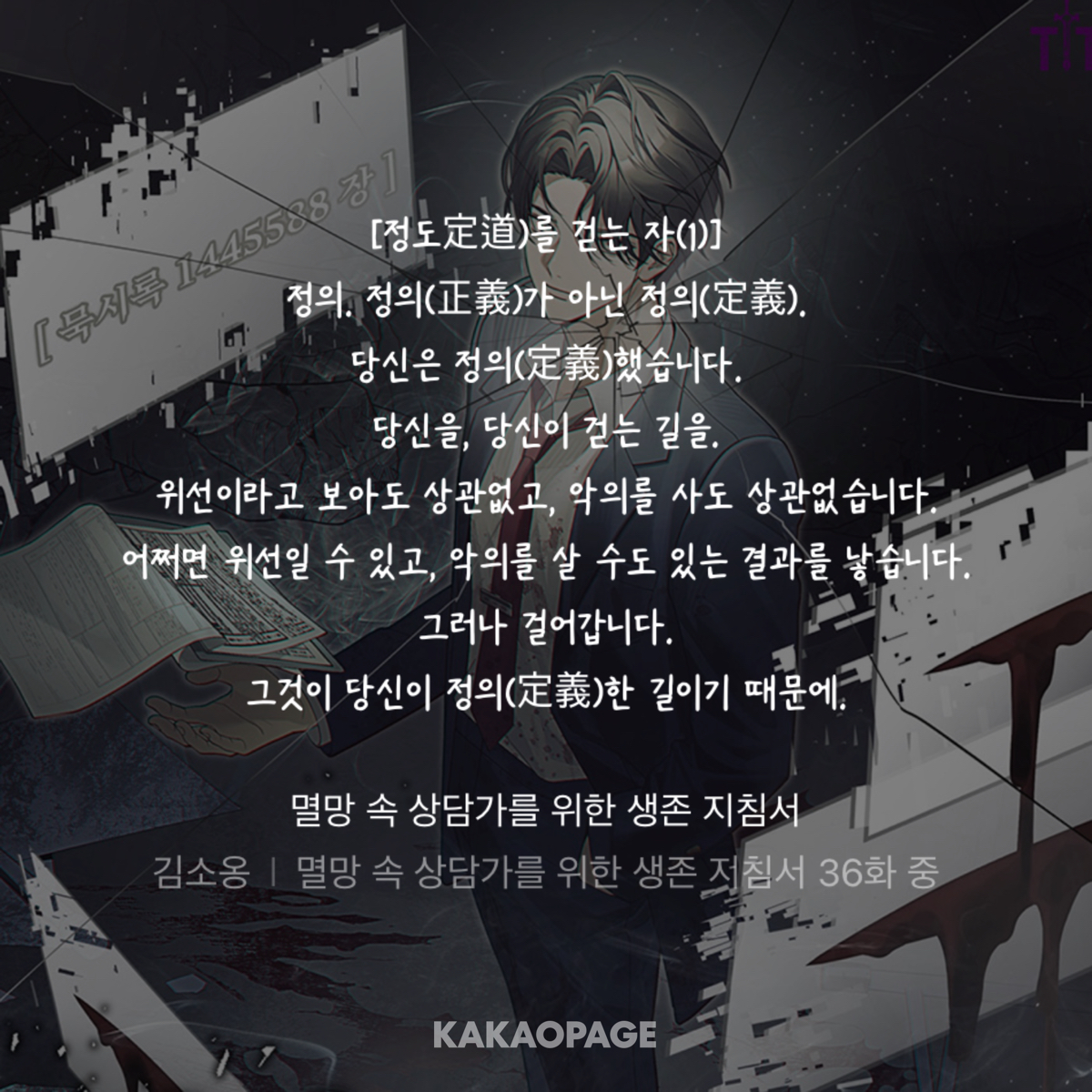 근데 나 이 부분 읽어도 무영이가 왜 상담사 하고 싶은 건지 이해 안 됨ㅋㅋㅋㅋ 뭔가 결정적인 이유가 없는 느낌? 본인이 처했던 과거에 트라우마가 있어 보이진 않아서 그런가? 그냥 내가 이타심이 좀 부족한 거 같기도 하하