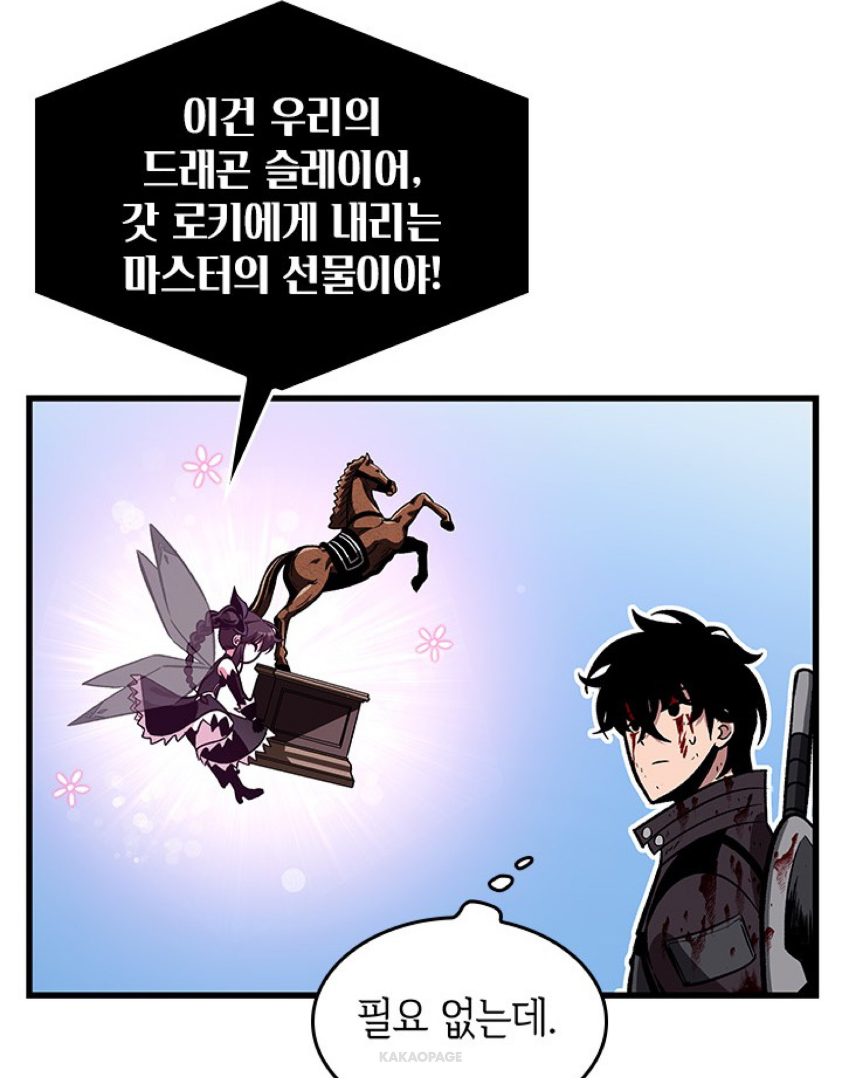 액션 되게 공들인 건 알겠는데 눈에 잘 안 들어옴 이래서 스크롤 형식인 웹툰 보다 페이지 형식인 만화를 선호함... 근데 한 이 자식 힘으로 용 대가리를 딴 거예요? 미췬럼 へ[ ᴼㅁᴼ ]_/¯