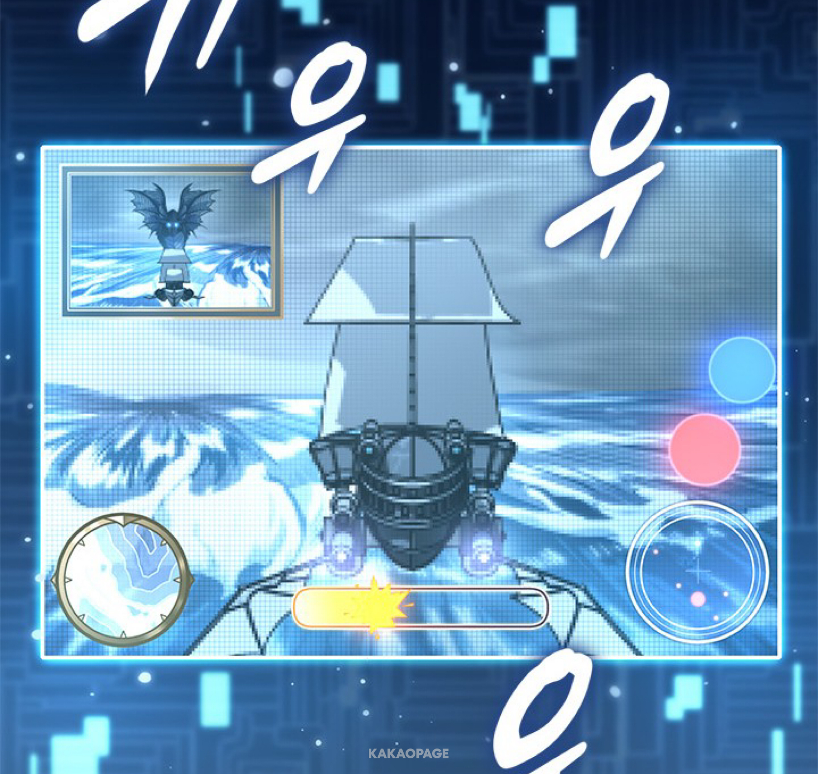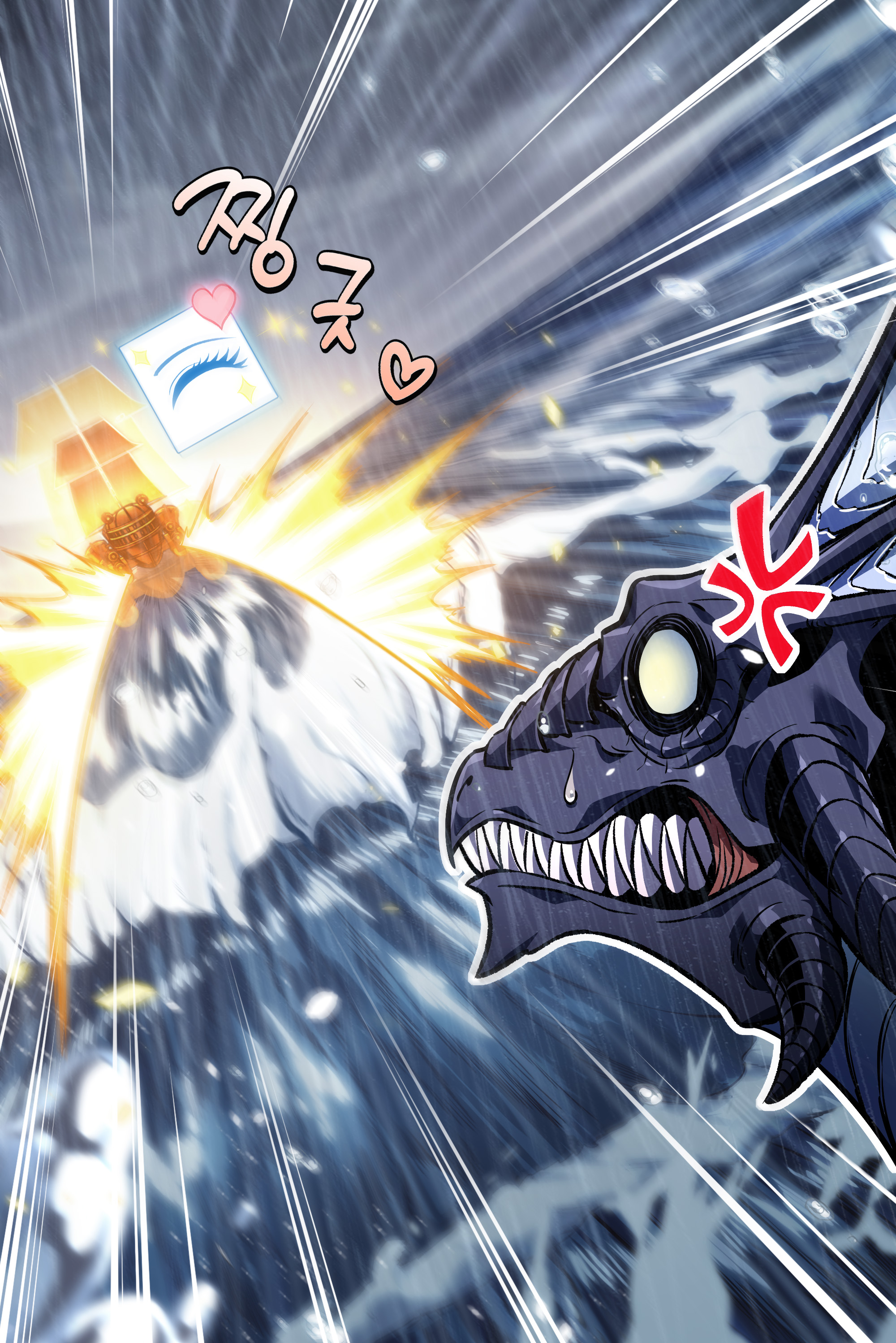신전 밖으로 떠밀린 그녀는 수룡의 시체와 함께 바다의 깊은 곳으로 빨려 들어가고 있었다.