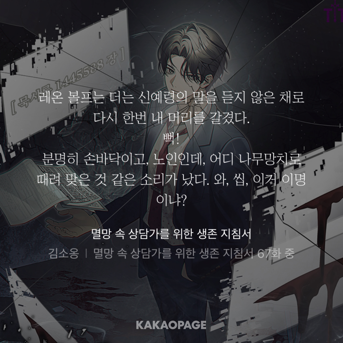 67화에서 무영이 서술 말고 대사가 안녕하십니까 밖에 없음 개웃기네ㅋㅋㅋㅋㅋ 레온 할배한테 끊임없이 처 맞고 훈련을 함